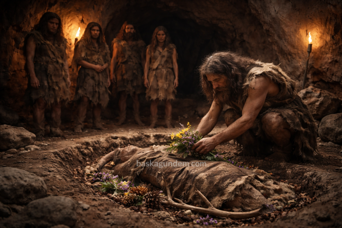 Neandertallerin eski yaşam biçimlerine dair yapılan arkeolojik keşifler, bu türün ölüm ritüelleri ve inançları hakkında merak uyandırıyor. Avrupa ve Asya’nın çeşitli bölgelerinde bulunan kalıntılar, Neandertallerin ölülerini gömüp kafataslarını topladığına işaret ediyor. Bu bulgular, onların sembolik düşünceye ve belki de bir tür inanç sistemine sahip olabileceği ihtimalini gündeme getiriyor.