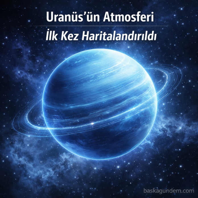 Kuzey Umbria Üniversitesi’nden Paola Tiranti liderliğindeki uluslararası araştırma ekibi, Uranüs’ün görünür bulutlarının 5000 km yukarısına kadar sıcaklıkları ve iyon yoğunluklarını ölçtü. Bu bölge, atmosferin iyonize olduğu ve gezegenin manyetik alanından güçlü şekilde etkilendiği iyonosfer olarak adlandırılıyor. Gözlemler, Uranüs’ün auroralarının nasıl şekillendiğine ve alışılmadık tilti olan manyetik alanının bunları nasıl etkilediğine dair net bir tablo sunuyor. Son otuz yılda Uranüs’ün üst atmosferinin soğumayı sürdürdüğü belirlenirken, en yüksek sıcaklık değerlerinin bulutların 3000 ila 4000 km üzerinde, iyon yoğunluğunun ise 1000 km yukarısında maksimum seviyeye ulaştığı görülüyor. Ayrıca, manyetik alanın karmaşık yapısına bağlı olarak uzunlukla ilgili belirgin farklılıklar da gözlemlendi.